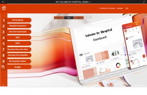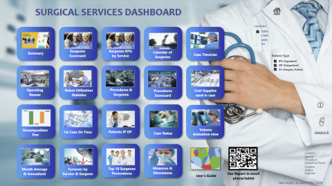 Shows volumes for current year, previous year and historical measurements for Surgery, Ambulatory, Cardiology. Timeline of surgeries. – …