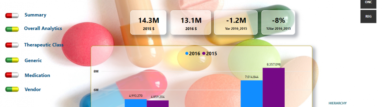 In the Pharmacy area, with our models in Power Bi, you will be able to see and analyze, in a very simple way, through interactive graphs and tables, variables such as the following: